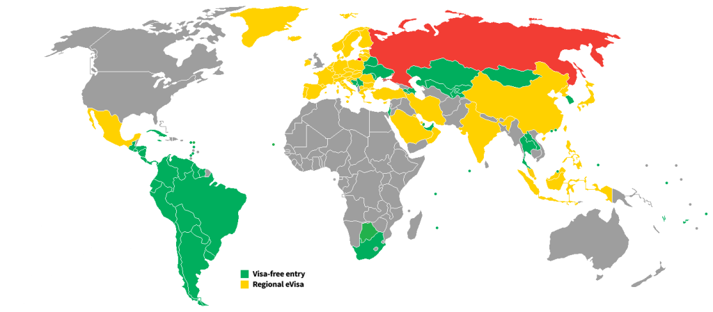 مناطق ویزای الکترونیکی روسیه برای اتباع ایرانی