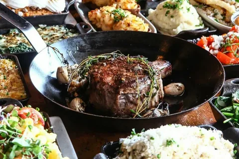 این رستوران که در غذاهای خود فقط از گوشت محلی استفاده کرده و از رستورانهای حلال در کازان می باشد، اولین خانه استیک حلال در روسیه است. در منوی این رستوران اثری از نوشیدنیهای الکلی و قلیان دیده نمیشود و در عوض انواع سالادها (سزار، گریل با قارچ شیرین، پنیر فتا و …)، انواع سوپها، برگرهای محلی، استیک و سبزیجات گریل شده و … به چشم میخورد. غذاهای این رستوران عموما با گوشت بوقلمون، گاو، مرغ، اردک و گوسفند تهیه میشوند. برای جلب بیشتر اعتماد مشتریان غذاهای این رستوران در معرض دید پخته میشوند.